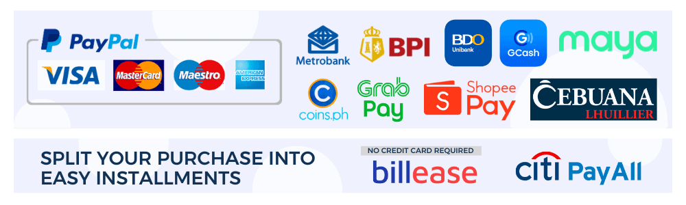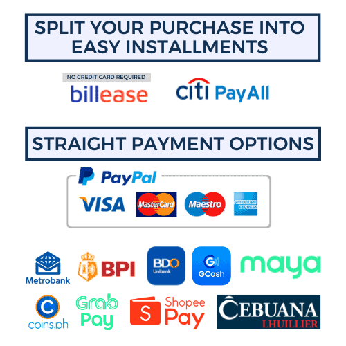 We also offer installment options through our partner – Billease. With Billease you can buy now and split your payments in easy low-interest installments even without a credit card. Learn more about shopping with Billease here.