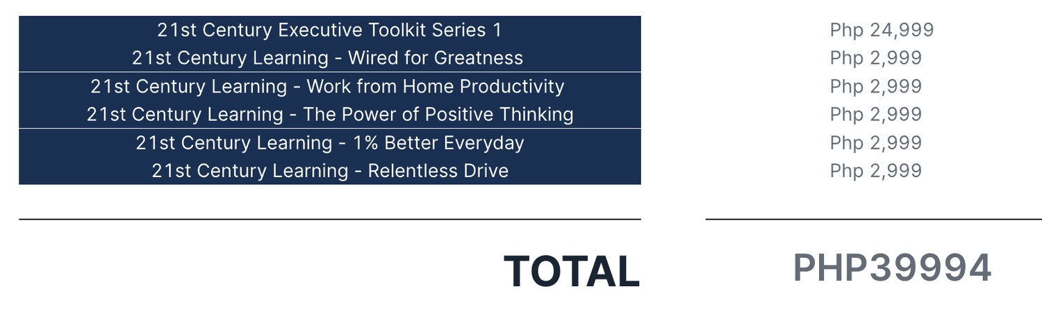 First of all, the price does not in any way reflect the quality of the course. If you review our packages and testimonials, you will find that we overdeliver on content and quality. Our goal is to simply help. That is our core mission. With what we teach, we hope to equip people with the necessary skills to succeed in what they do. By making courses like these affordable and accessible to Pinoys regardless of where they live or what they do, we can contribute to developing high-performer Pinoys and making a better Philippines. A course like this would normally be reserved for the privileged and those with a more substantial budget. But we want to bridge that gap for the majority of Filipino professionals on a tighter budget as much as we can.