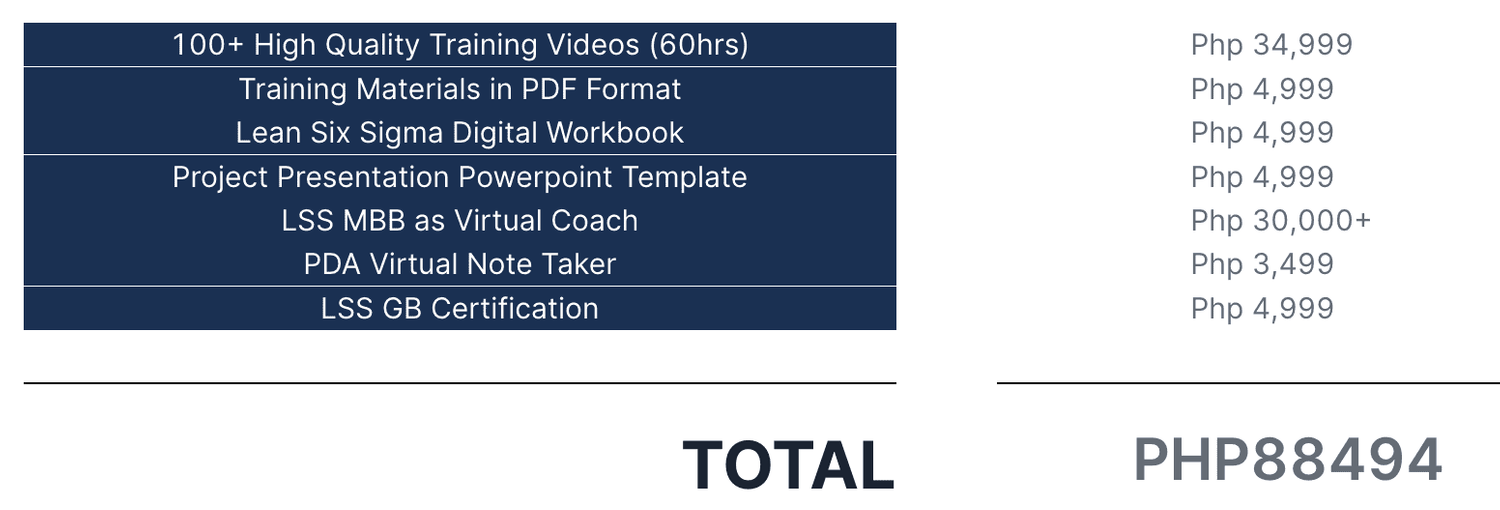What we can assure you is that our courses are aligned to global standards (with the ASQ, GE, and Six Sigma Council at least)– you can freely compare our content vs others. We take our name as our guarantee and we take accountability for the learning of our students. We make sure those who graduate from our training and certification have what they need to succeed. You could check around the market and see training and certification that will charge you more and provide much less value. That is precisely why we made this course. So people will have a high-quality training option that fits in their pockets and one which they can take anywhere and anytime. Without the need to adhere to any schedule. We get remarks from our students saying that they learned more from our LSS Yellow Belt than from the Green Belt course they took somewhere else. That is also why we provide a 60-day money-back guarantee (check around and see who else offers a money-back guarantee). So if you took the course and found it not valuable for the investment, just send us a note and we’ll refund you your payment back. We don’t feel comfortable having your personal investment, the money you worked hard for, but not adding value to you. It just doesn’t fit our DNA and that is not how we are wired, nor how we operate. We just want to help and we believe nobody can argue with that. You may check out our testimonials here and see what people have to say about us